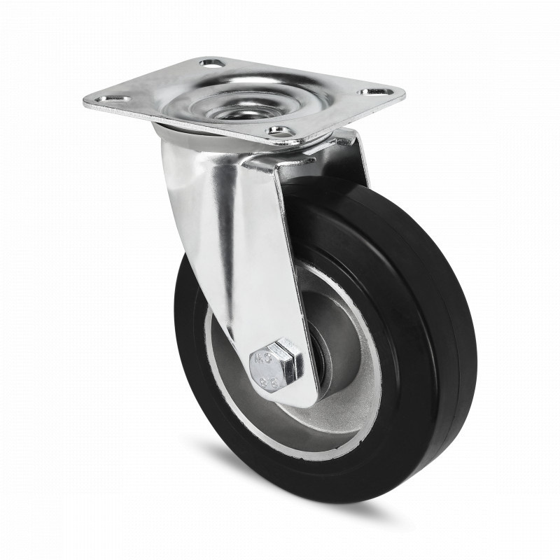 Gummihjul 125 mm med kugleleje og plade - 200 kg