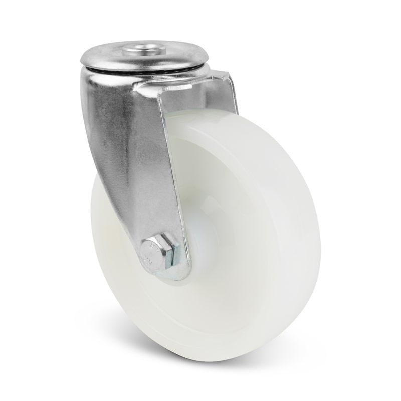 Roue pivotante en nylon 80 mm avec trou de boulon 12 mm - 125 kg